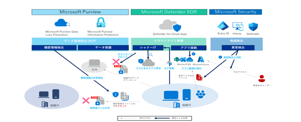 | データ保護 | DLP、保持、ラベル、外部共有統制 |